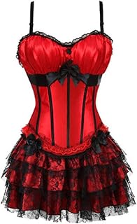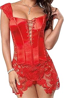 KHDFYER Nuisette Sexy Femme Coquine Femmes Sexy Bretelles Overbust Corset Bustier Top avec Mini Jupe en Dentelle Fantaisie Robes Costume Sexy Gothique Corsets Robe