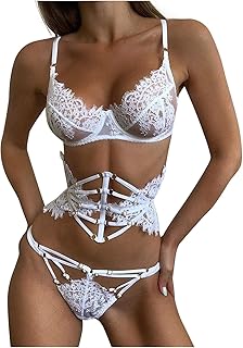 BaoDan 3 PCS Ensemble Lingerie Femme Sexy Cosplay, Strings Hot Sexy Charmant + Ceinture Femme Large + Soutien-Gorge Dentelle Femme Push Up, Corset Femme Sexy Bandage, Vêtements de Nuit