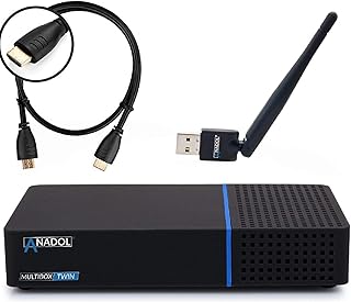 Anadol Multibox Twin Récepteur satellite Twin 4K UHD E2 Linux avec fonction d'enregistrement PVR, tuner DVB-S2, HDTV, 2160p, H.265, HDR [préprogrammé pour Astra & Hotbird] + câble HDMI + clé USB WiFi