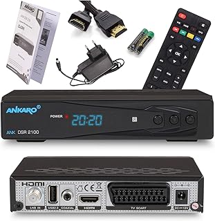 Ankaro 2100 DSR - Récepteur satellite HD avec fonction lecteur multimédia USB - Récepteur DVB-S/S2 pour satellite - Astra & Hotbird préinstallé + câble HDMI Anadol (avec fonction d'enregistrement PVR)