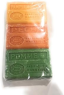 Label Provence - Lot de 3 Savons de Marseille BIO à l'huile d'olive - parfum pamplemousse/pêche/pomme