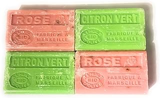 Label Provence -Lot de 4 savons de Marseille à l'huile d'olive bio-Parfum 2 rose et 2 citron vert-4x125g-