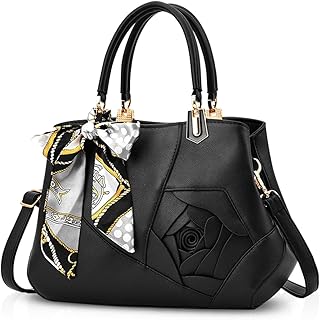 Fleurs Femmes Top Handle Sacs à Main Sac à bandoulière Crossbody Bag Tote Satchel pour Dames Cuir PU Noir