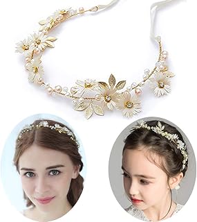 30cm Bandeau Couronne de Fleurs Marguerite Bijoux Cheveux Mariage Doré Perles Cristal avec Ruban Accessoire Cheveux Mariage Serre-Tête Headband pour Femme Enfant Mariée Demoiselles d’Honneur