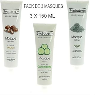 Kit de 3 Masques Hydratant Visage à L'huile d' Argan + Masque Purifiant à l' Argile + Masque Douceur et Anti -Stress au Concombre (3 produits de 150 ml)