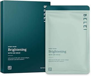 Marque Amazon - Belei - Masque tissu illuminant à l'or 24 carats, 10 Masques