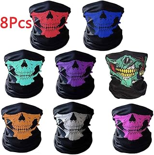 8PCS Masque Crâne,WolinTek Squelette Masque Moto,Skull Masque, Masques Visage de crâne, Masque de Motoneige de Motard, Cache-Cou de Moto,Masque de Bande de Bandana Balaclava