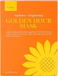 ELROEL Golden Hour Mask Lot de 5 masques de visage avec huile de tournesol, masque illuminant en tissu Tencel, masque de 25 g chacune