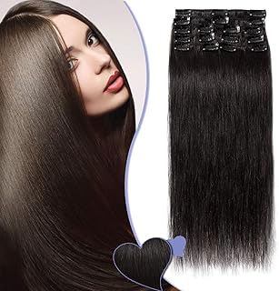 Extensions Clip Cheveux Naturel Rajout Vrai Cheveux Humain Lisse - 8 Bandes pour Cheveux Fin (#01 NOIR FONCE, 55cm-75g)