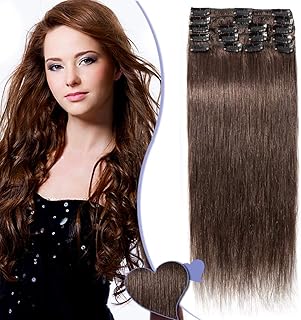 Extension Clip Cheveux Naturel Rajout Vrai Cheveux Humain Lisse - 8 Bandes pour Cheveux Fin à Moyen - #04 MARRON CHOCOLAT (50cm-105g)