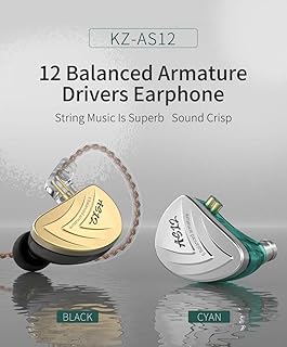 KZ AS12 Écouteurs intra-auriculaires 12BA avec armatures équilibrées HiFi Bass Intra-auriculaires Suppression du bruit Écouteurs en alliage de zinc (pas de micro, doré)